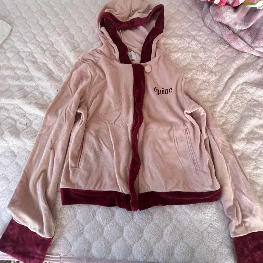 epine 후드 부착 셋업 핑크/와인 레드 벨로아 셋업