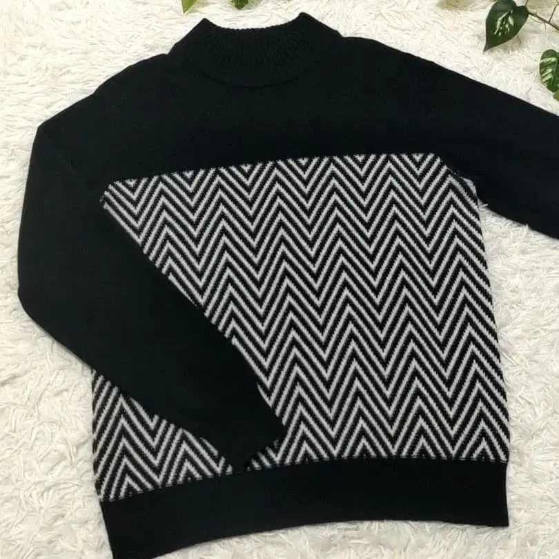 EDIFICE 노르딕 무늬 니트 S 블랙 새상품급