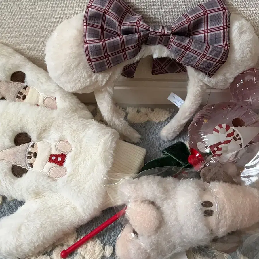 디즈니 미키 귀 머리띠와 봉제 인형 미튼 세트