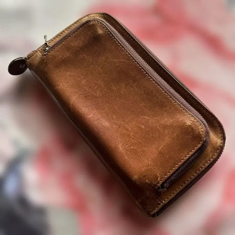 고품질의 브라운 가죽 장지갑, 여러 개의 카드 슬롯을 갖춘 실용적인 디자인.