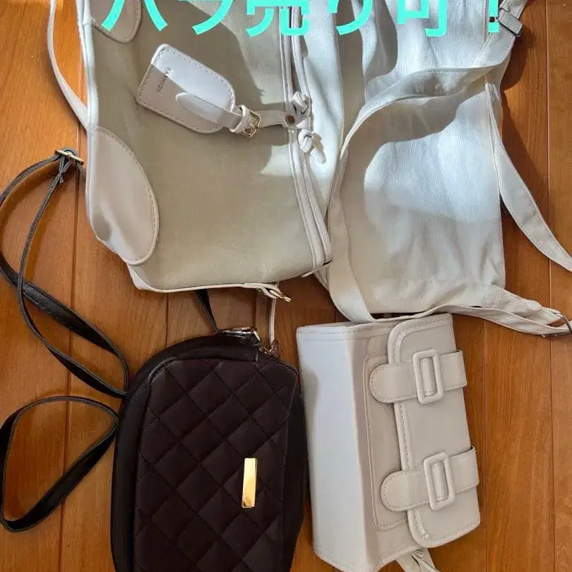 화이트 버클 숄더백과 브라운 퀼팅 백 세트