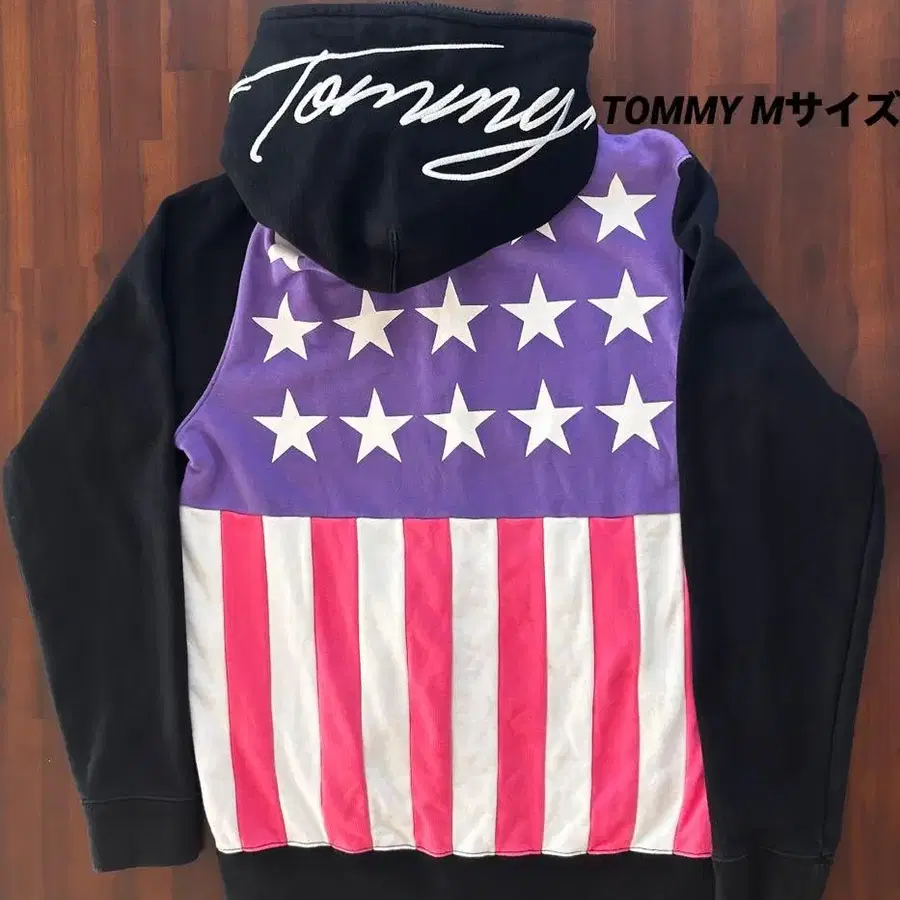 TOMMY 풀 집업 후드티 성조기 디자인 코튼 100% M 사이즈