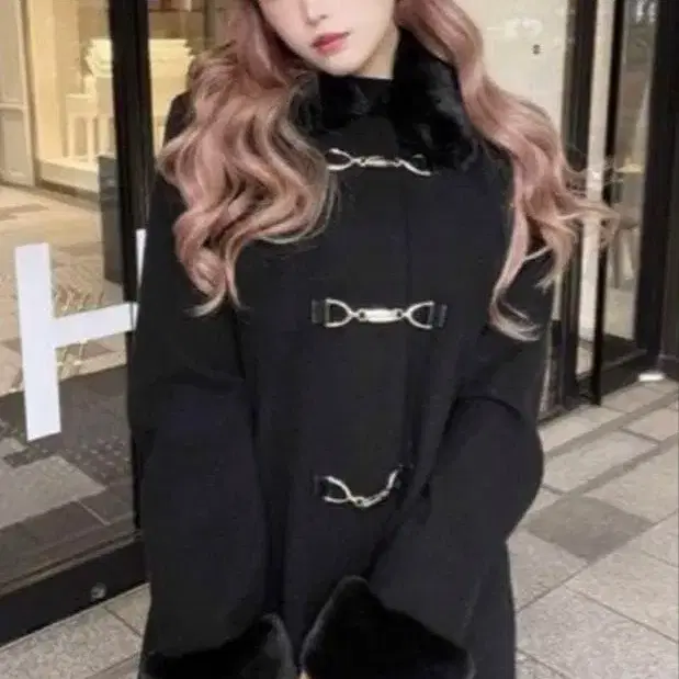 • AnkRouge 프론트 비쥬 스캘럽 도리 코트 핑크