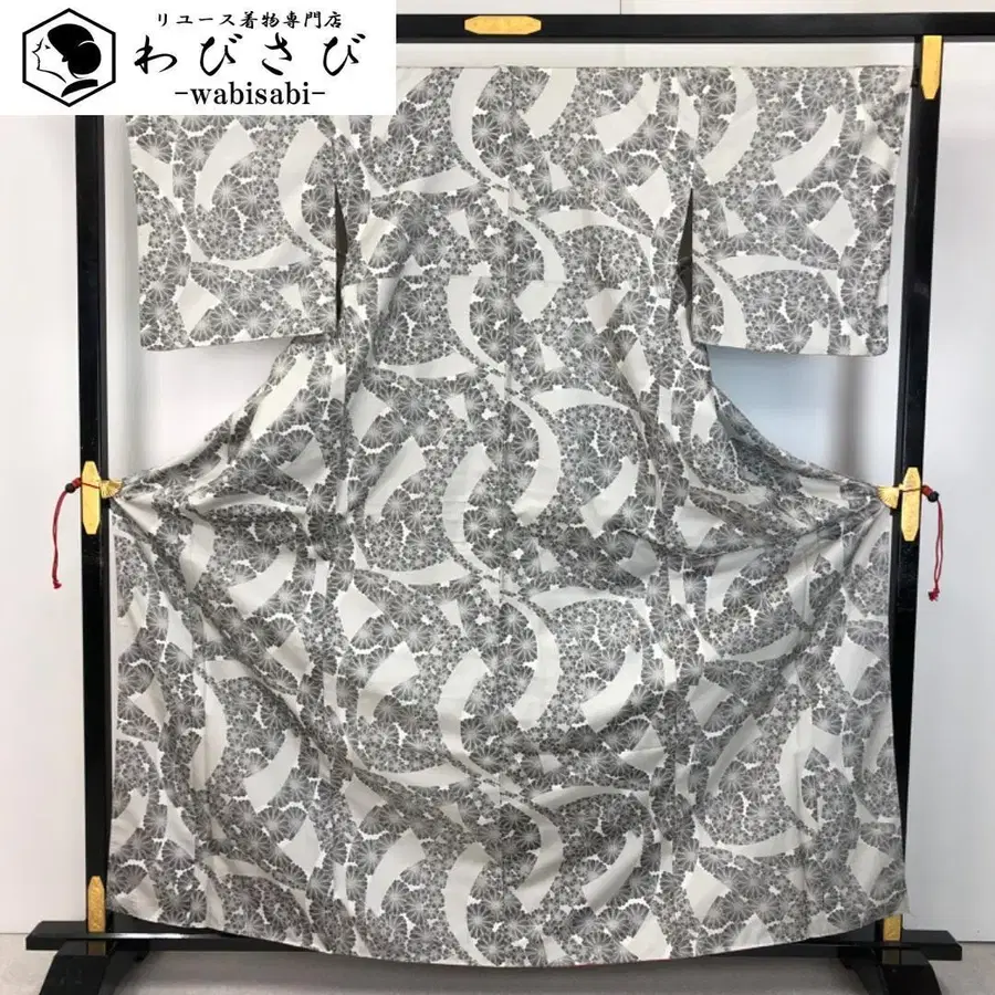 명주 기모노 국화꽃 무늬 구름쥐색 톨 사이즈 K-5634