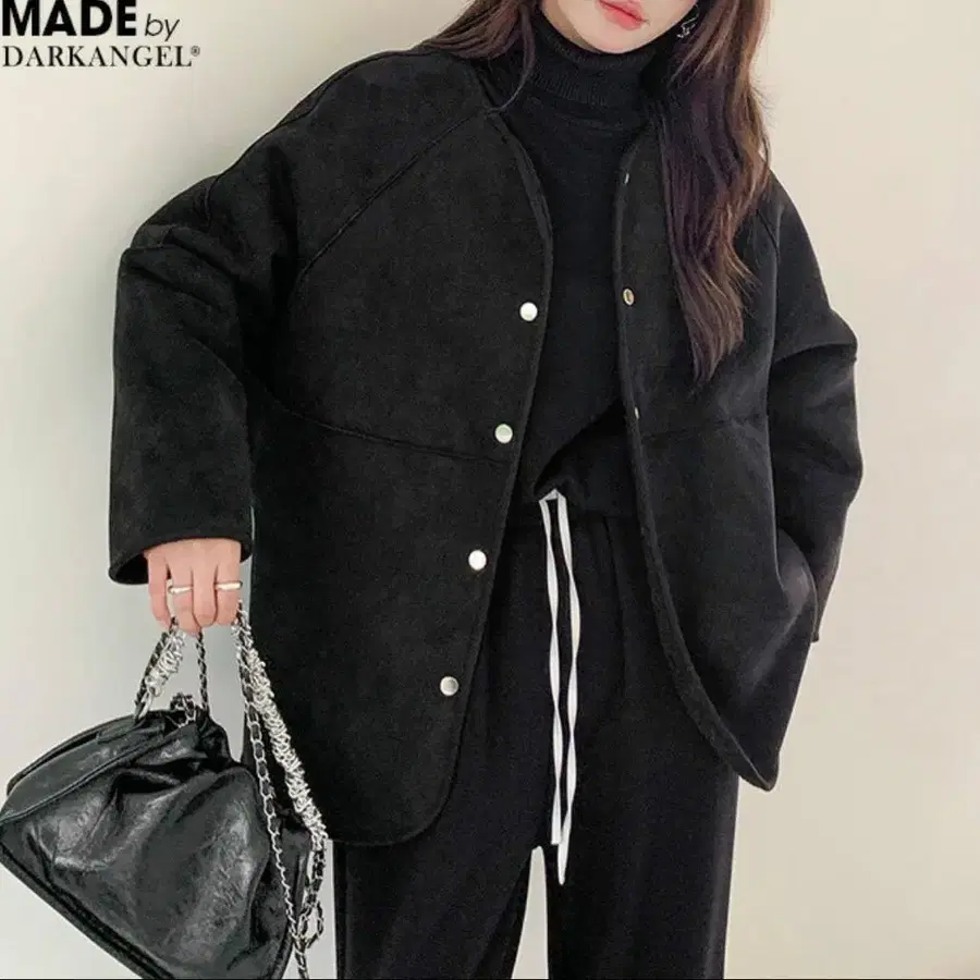 2WAY 리버서블 보아 스웨이드 느낌 페이크 무스탕 노카라 자켓
