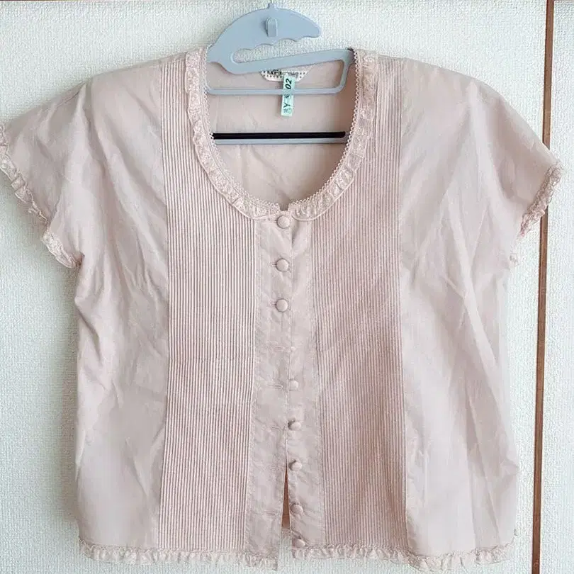 카네코 이사오 핑크하우스 프릴 달린 핑크 스트라이프 셔츠 블라우스