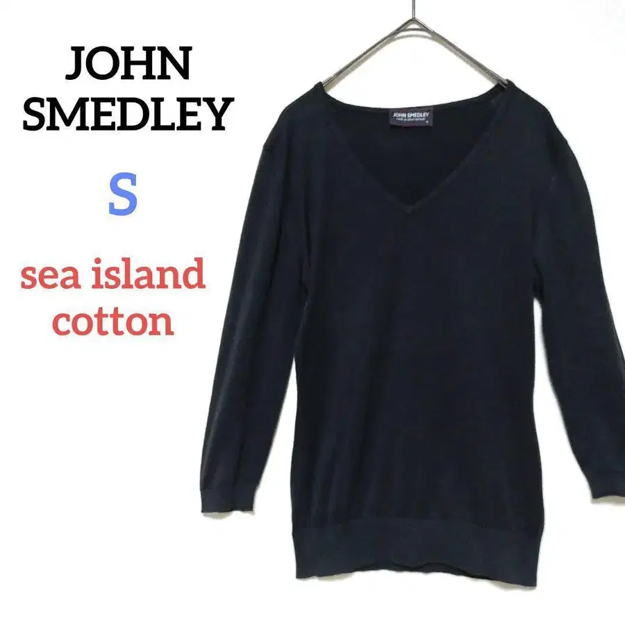 존스메들리 씨 아일랜드 코튼 니트 V넥 얇은 소재 영국제 블랙