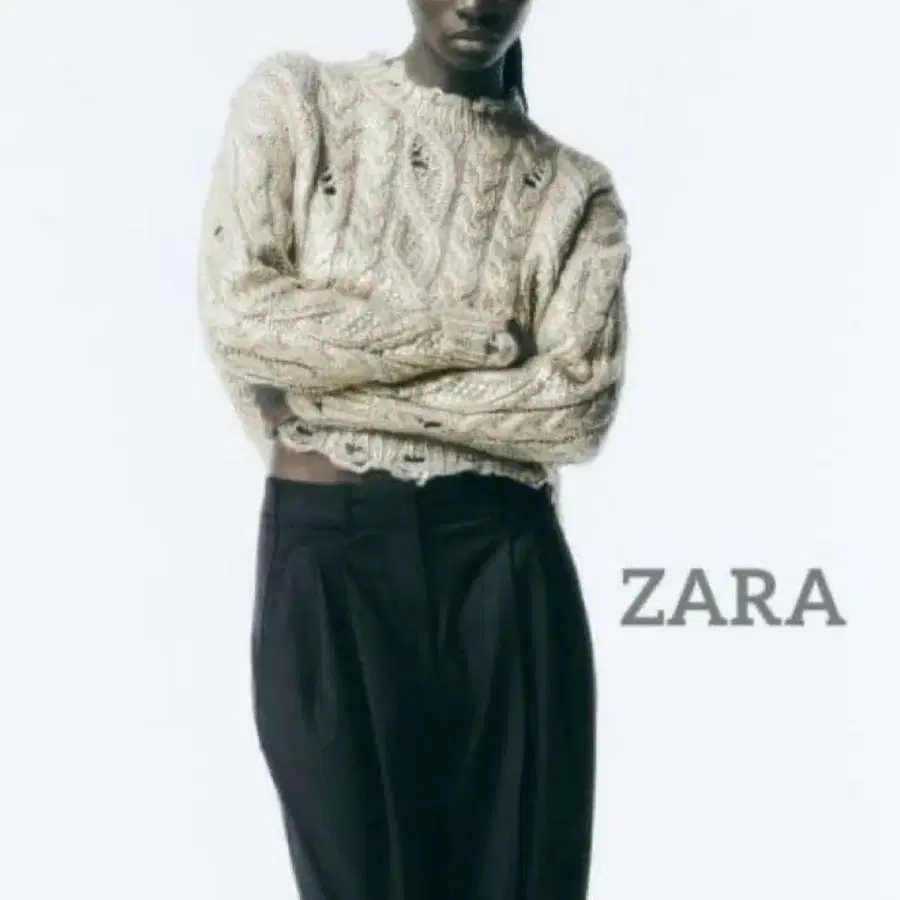 ZARA 그레이 케이블 니트 크롭 L 사이즈