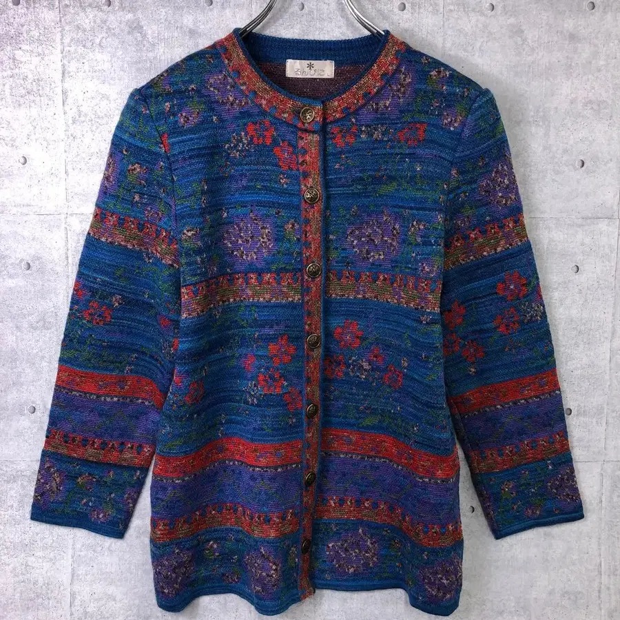 룬빈 레트로 모드 구제 의류 꽃무늬 자카드 골드 버튼 니트 가디건