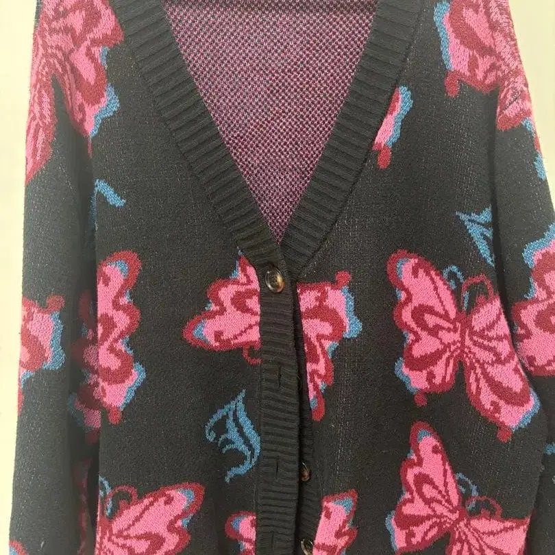나비 패턴이 특징인 니트 가디건, V넥 디자인. [ 사이즈 ] 어깨 너비: 54 cm, 소매 길이: 60 cm, 기장: 65 cm, 가슴 너비: 68 - 디자인: 나비 패턴 - 색상: 블랙, 핑크, 파랑 - 버튼: 투명 버튼 - 스타일: V넥 - 소재: 니트 방문해 주셔서 감사합니다. [ 상품 설명 ] ANNA SUI를 이미지화한 오리지널 버터플라이 패턴을 자카드로 표현한 니트 가디건. 라메사를 섞어 부티크 느낌으로 마무리했습니다. 면 아크릴 벌키 타입으로, 면의 적당한 드라이 터치 질감입니다. JQD 편직으로 더블 조직으로 하여 두께감도 적당하며, 면 혼방이라 보풀 없이 깔끔한 표면감입니다. 평소 스타일에 겉옷으로 걸치기만 해도 단번에 화려한 인상을 줍니다. 패턴 ON 패턴의 캐치한 스타일링도 추천합니다. 정가 ¥11,900 한눈에 반해 매장에서 구매했습니다! 소중히 입어주실 분께 양도하고 싶습니다!