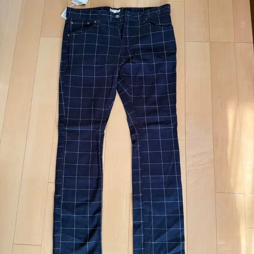 [ 새상품 ] Relation 네이비 체크 무늬 슬림핏 팬츠