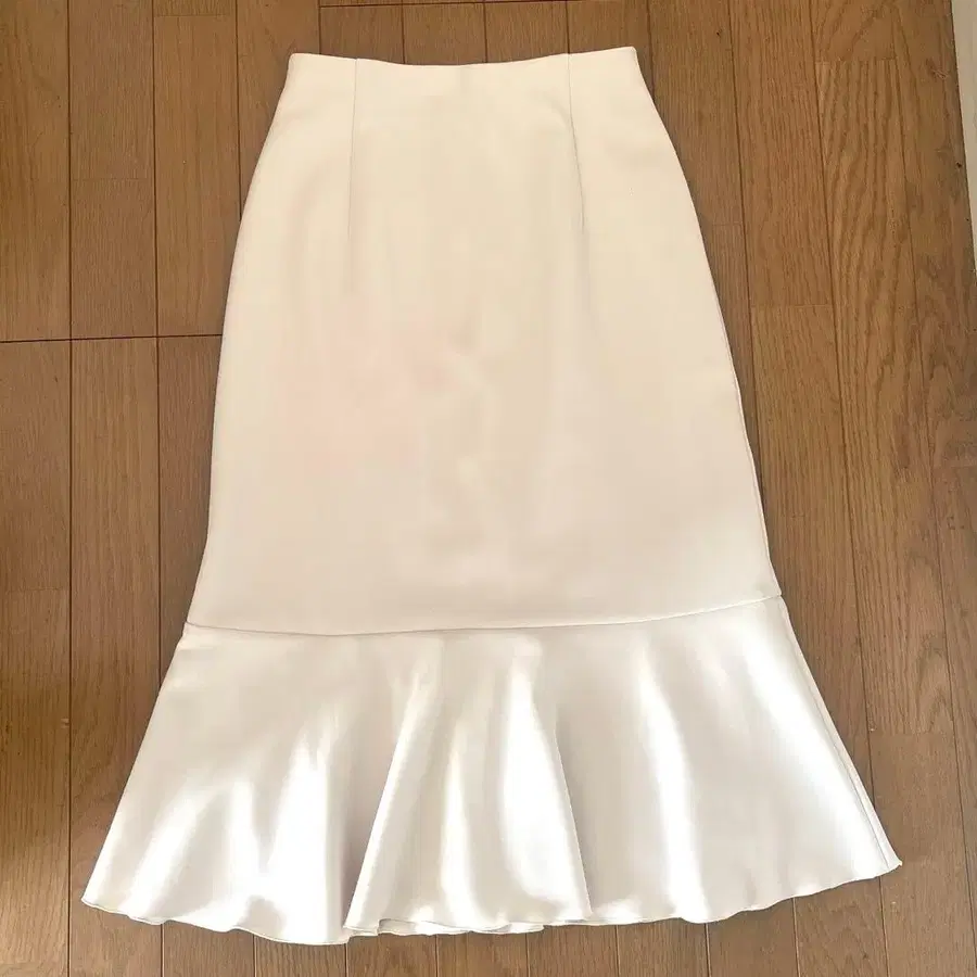 스트로베리 필드 화이트 플레어 헴 타이트 스커트