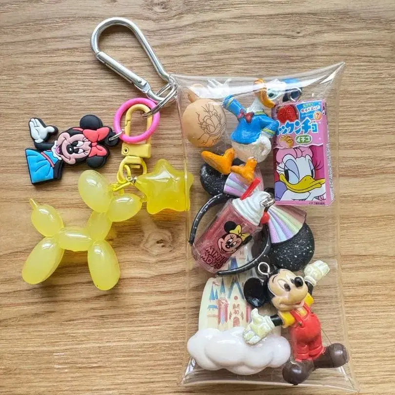 미키, 미니, 도날드의 캡슐 토이 세트. 카라비너가 달려 있어 휴대하기 편리합니다.