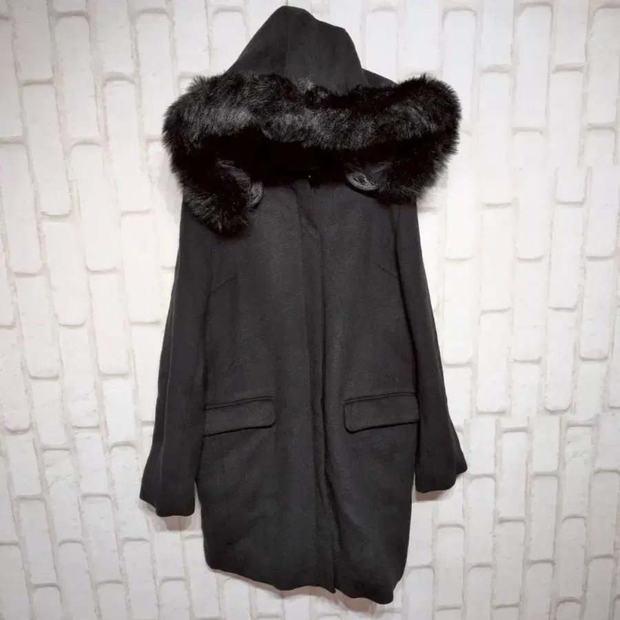 • [ 새상품급 ] ZARA 페이크 스웨이드 후드 벨트 코트 블랙