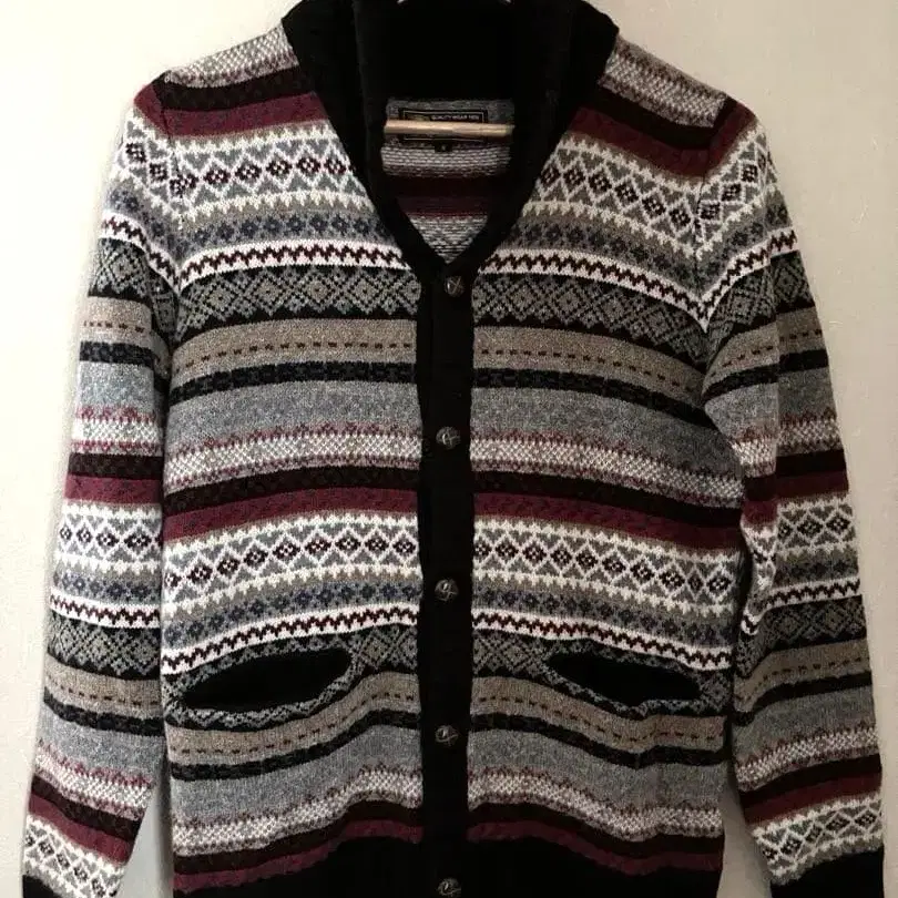 빔즈 고품질 울 100% 기하학 패턴 가디건 멀티 컬러