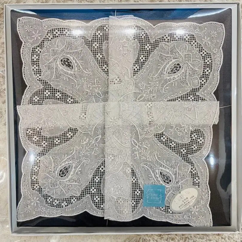 [ 미사용 ] SWATOW 스와토우 자수 레이스 손수건 화이트