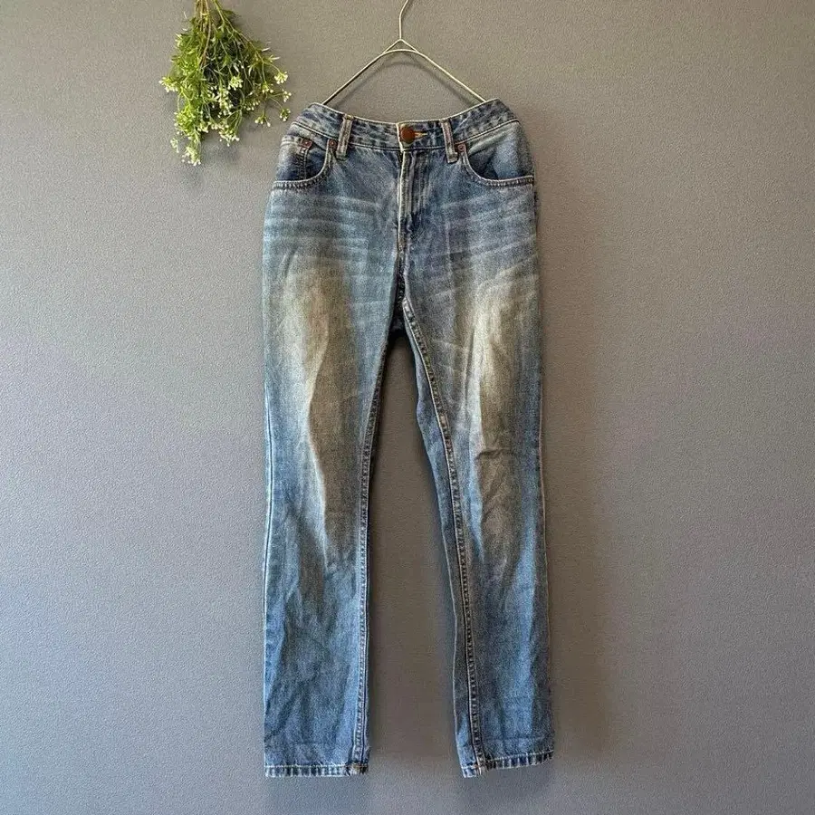 • 새상품 미사용 택 포함 유니클로 로고 자수 스트레이트 데님 24인치 61