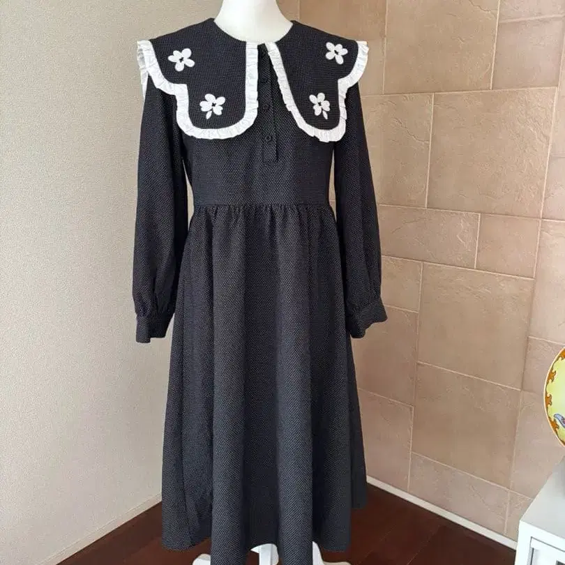 KUOSE 플라워 모티브 다크 그레이 원피스