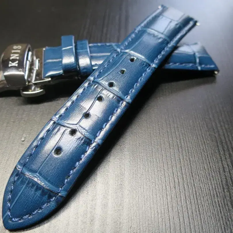 KNIS 본 소가죽 악어 엠보싱 가죽 벨트 D 버클 20mm 네이비