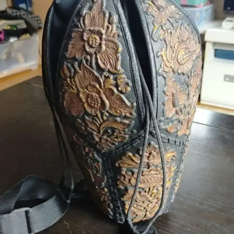 가죽 꽃무늬 엠보싱 가공 숄더백