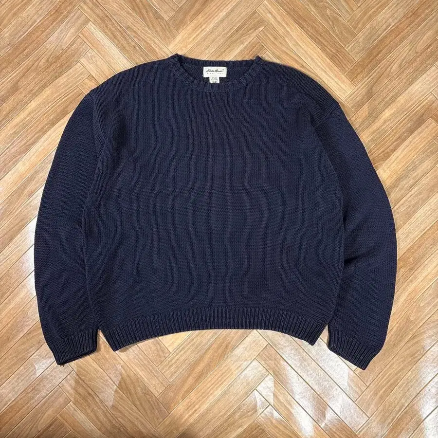 90s 화이트 택 에디 바우어 두툼한 코튼 니트 네이비 미들 게이지