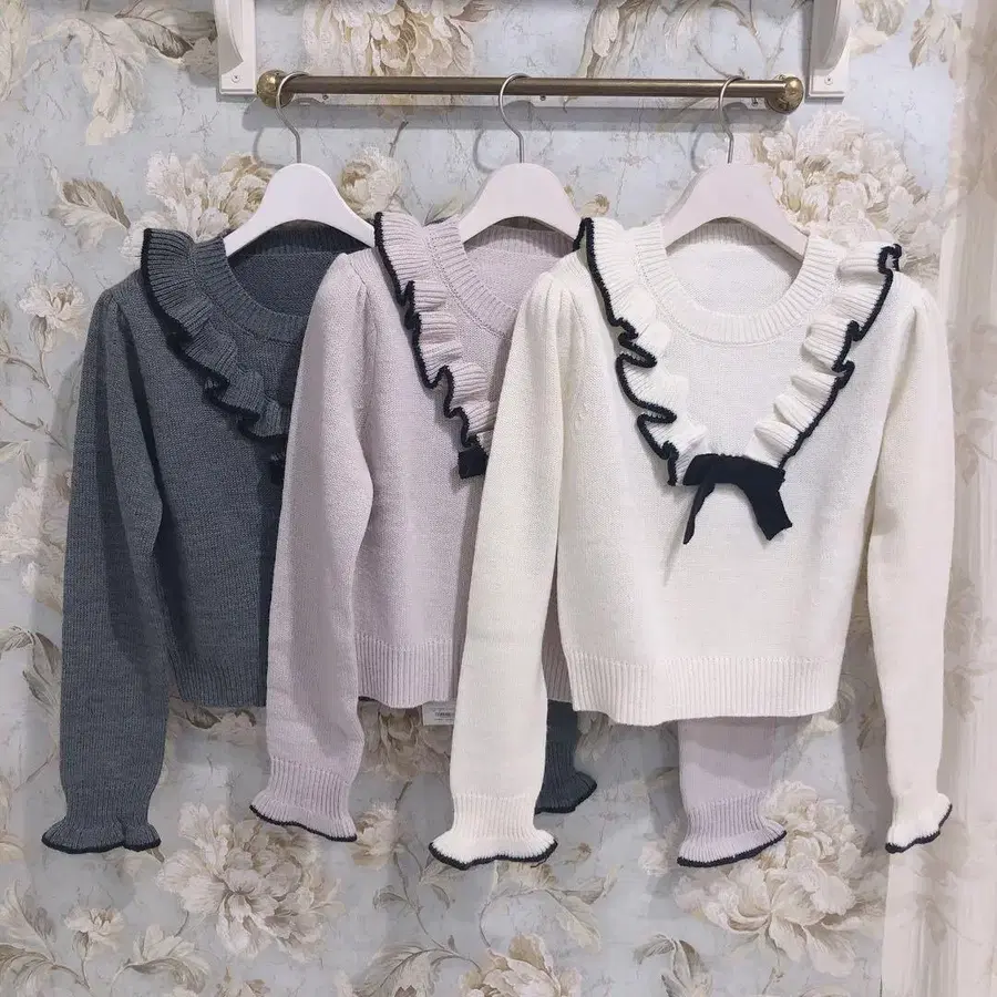 evelyn 바이컬러 리본 프릴 니트 화이트