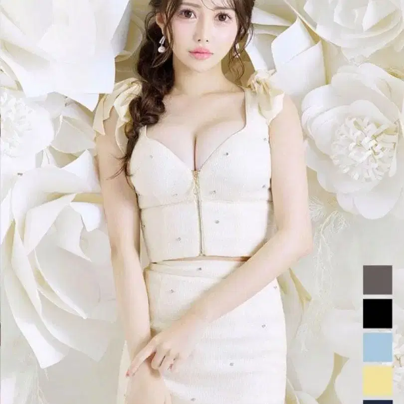리본 숄더 비쥬 셋업 드레스 아이보리 xs