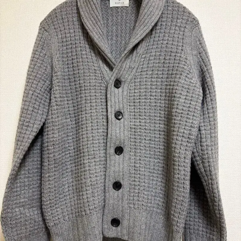 자동 번역되었어요. 원문보기EDIFICE의 래글런 케이블 니트 디자인의 그레이 숄카라 가디건.