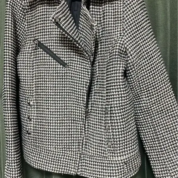 화이트 블랙 체크 라이더 자켓