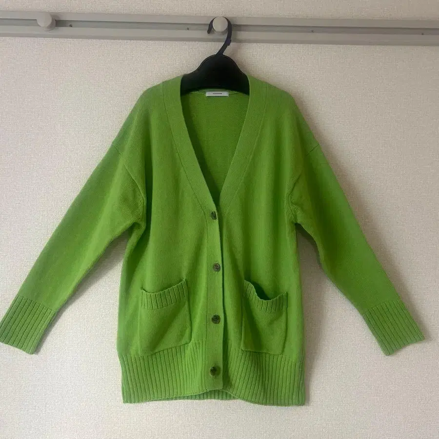 선명한 그린 색상의 리브 니트 가디건, 포켓이 있어 실용적입니다.