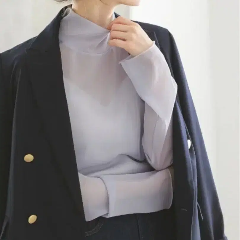 [ 미사용 ] NOBLE 시어 스키니 하이넥 TOPS 색스 블루