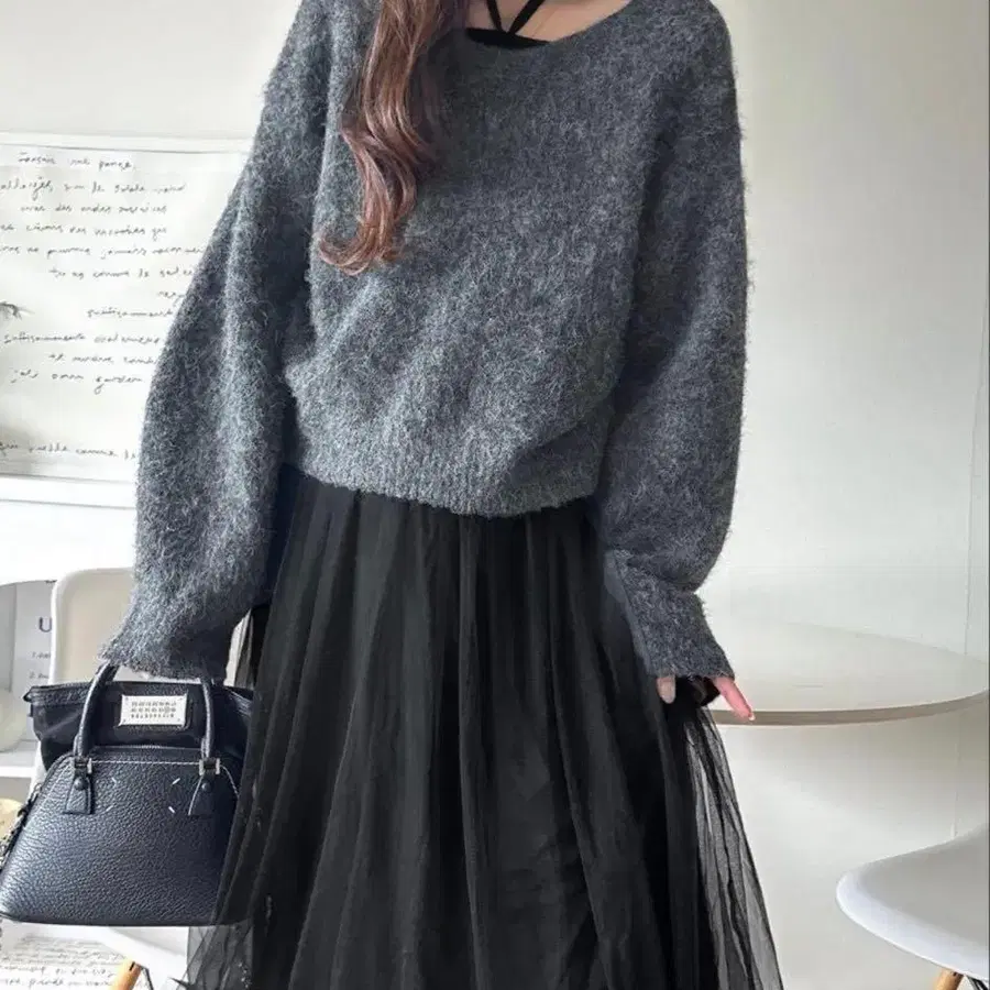 포근한 니트와 비침 있는 튤로 사랑스러움을 연출