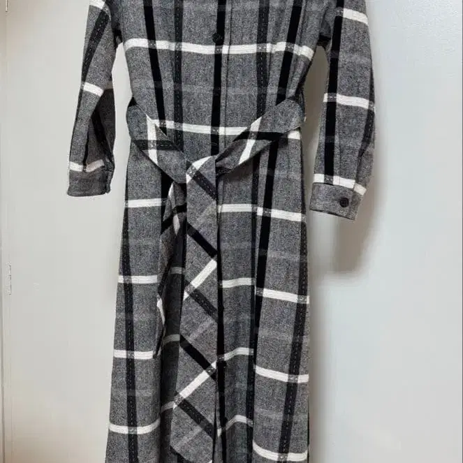 [ 새상품급 ] ICHI 이치 울 롱 원피스 체크 얇은 소재 프리