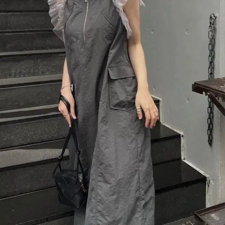 [ 완판템 ] willfully 튤 프릴 슬리브리스 나일론 지퍼 원피스
