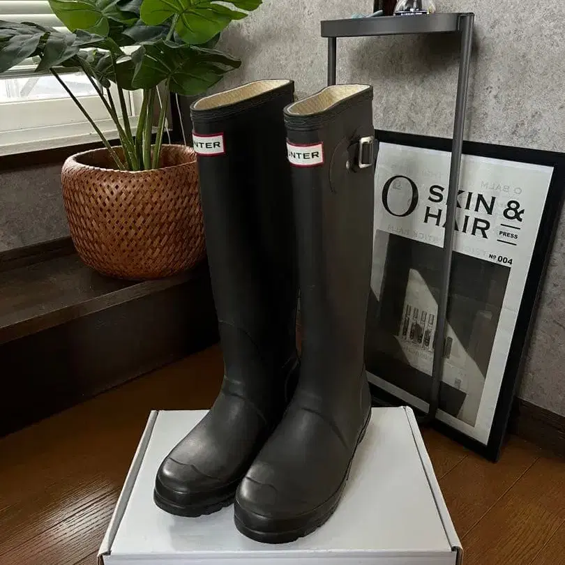 Hunter 다크 브라운 롱 부츠