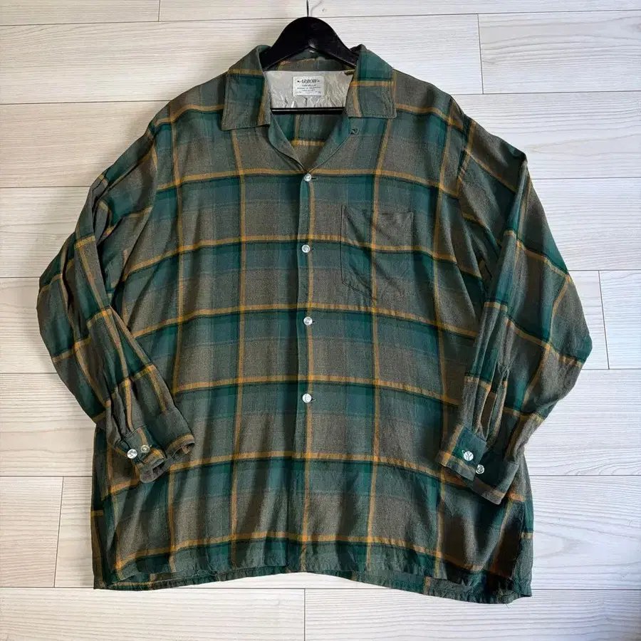 • 60s Game and Lake 옴브레 체크 울 셔츠 오픈 카라