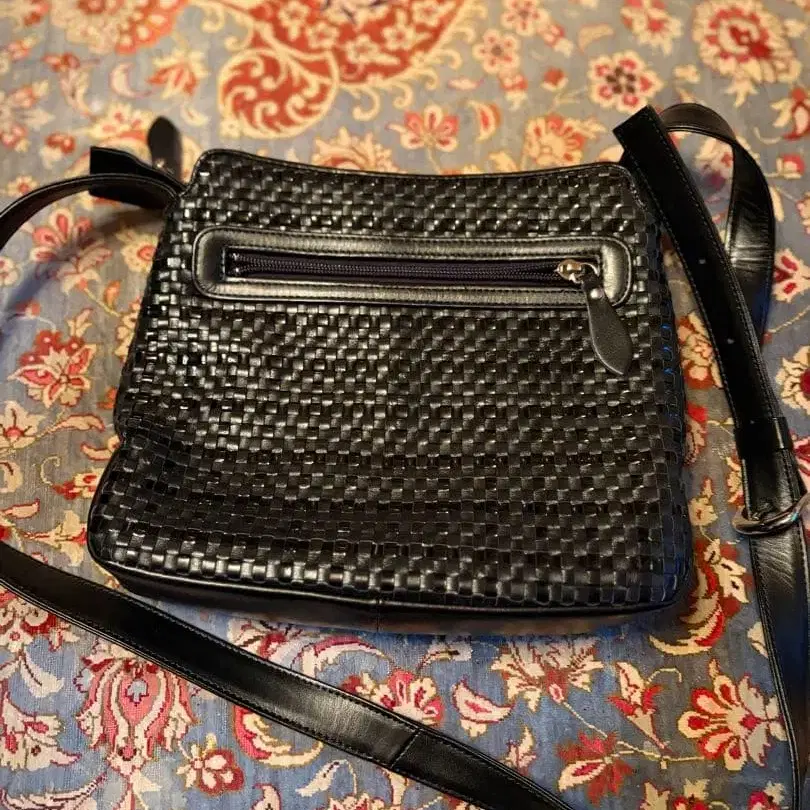 [ 새상품급 ] 뜨개질 디자인 천연 가죽 숄더백 블랙