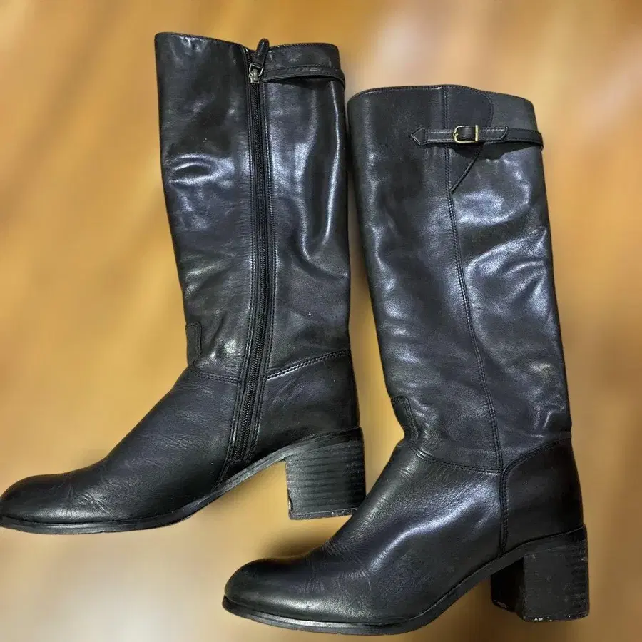 블랙 가죽 롱 부츠 사이드 지퍼 부착