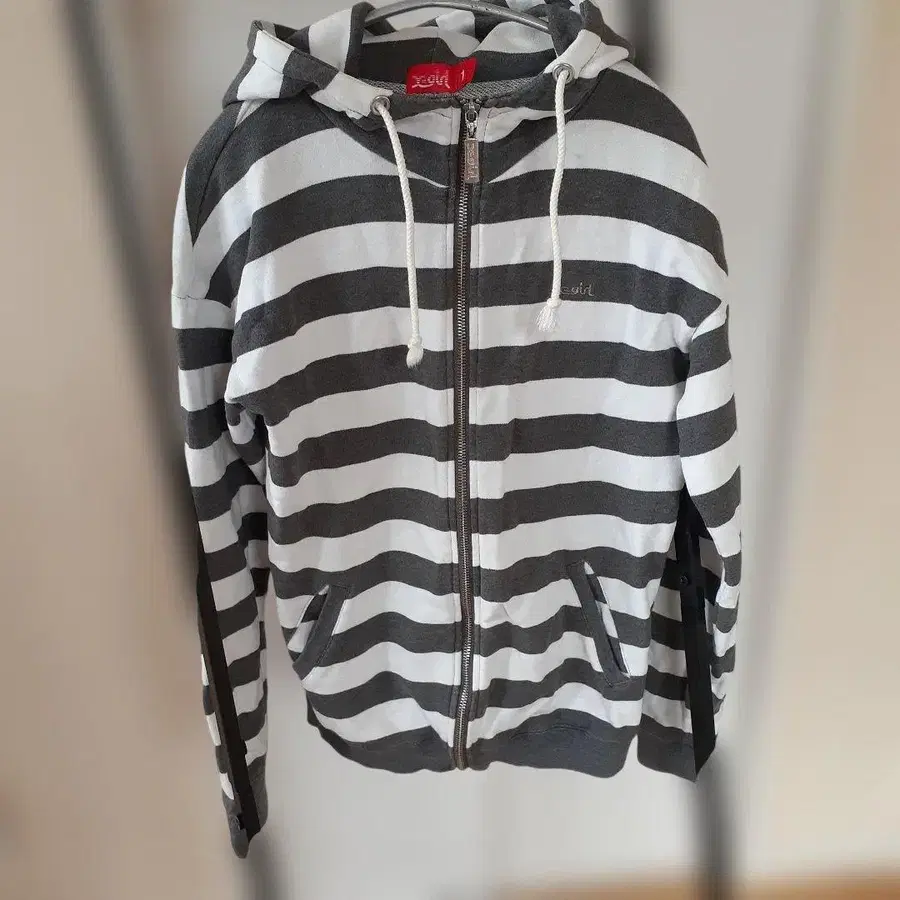 x-girl 스트라이프 후드 후드티