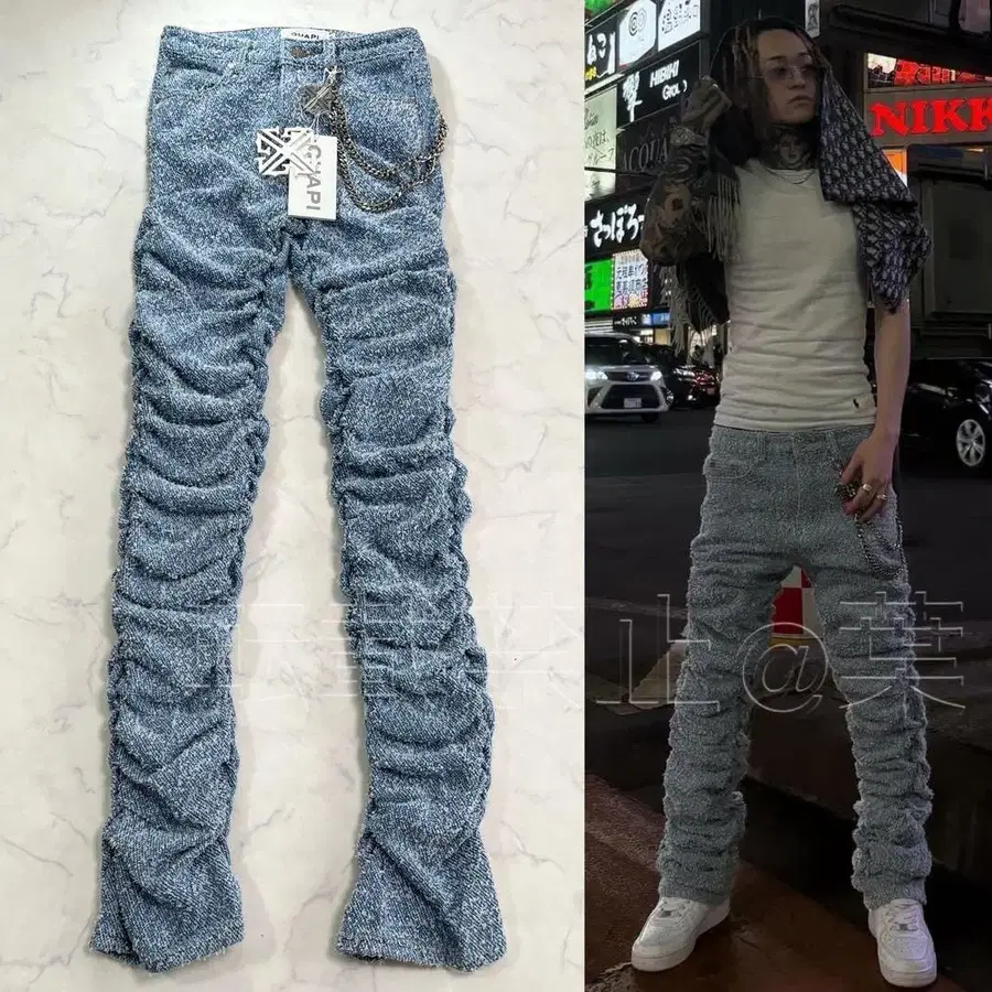 GUAPI 리브 디자인 데님 팬츠 라이트 블루 선착순!