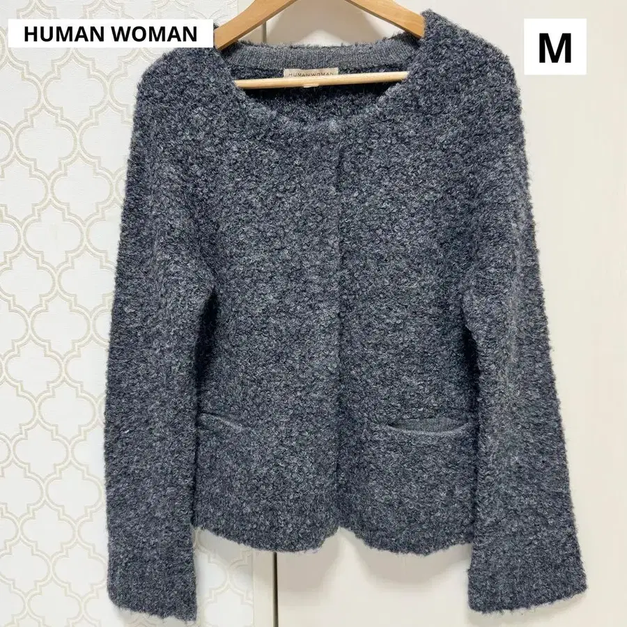 [새상품급] HUMAN WOMAN 알파카 혼방 부클 니트 가디건 M