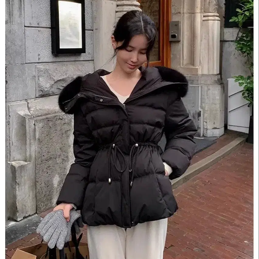 SUTORE 퍼 허리 마크 다운 자켓