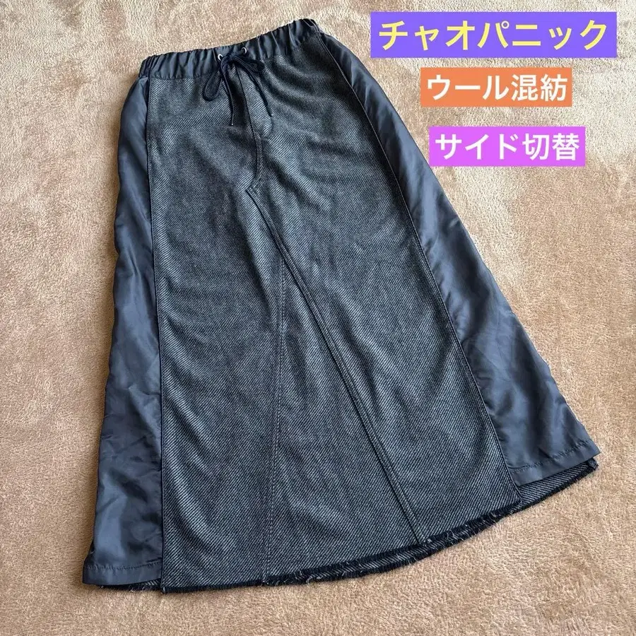 차오패닉 사이드 절개 롱 스커트 울 혼방