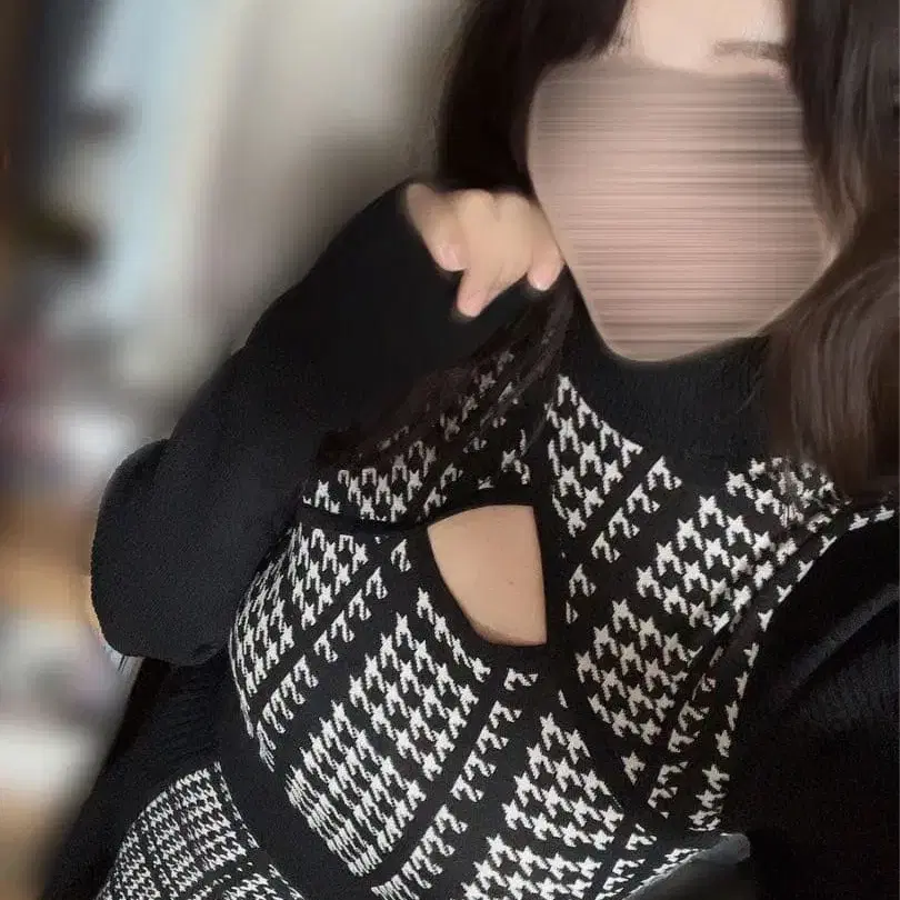 rienda/2WAY 롱 슬리브 하운드투스 체크 플레어 니트 원피스