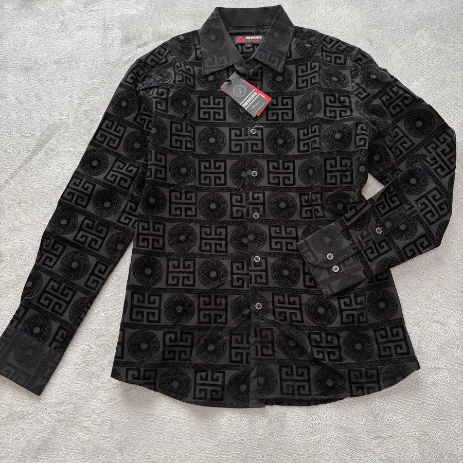 패턴 셔츠 올 패턴 블랙 버튼 긴팔 셔츠 블랙