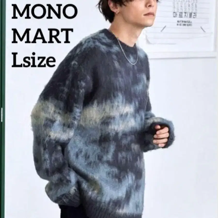 MONO-MART 아브스트랙트 샤기 모헤어 라이크 루즈 크루넥 니트