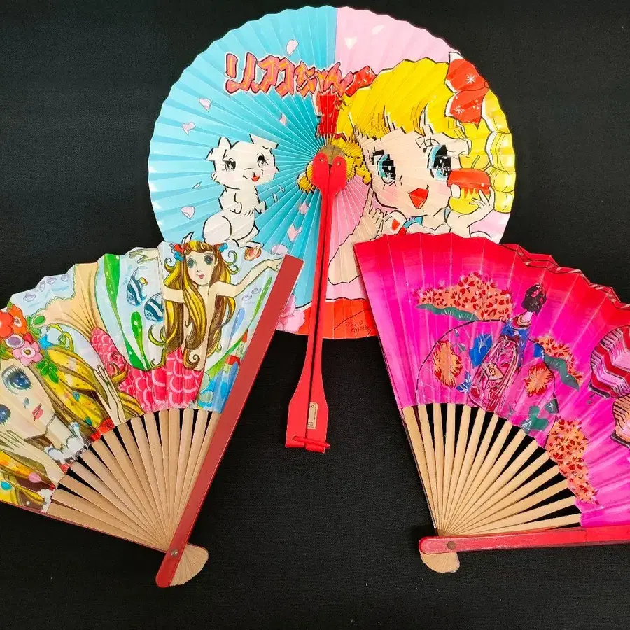 데드스탁 쇼와 레트로 부채 3종 세트 리카짱 인어공주 마이코 부채