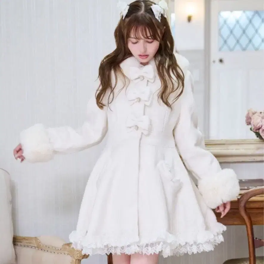 LIZLISA 백 티어드 리본 코트 화이트