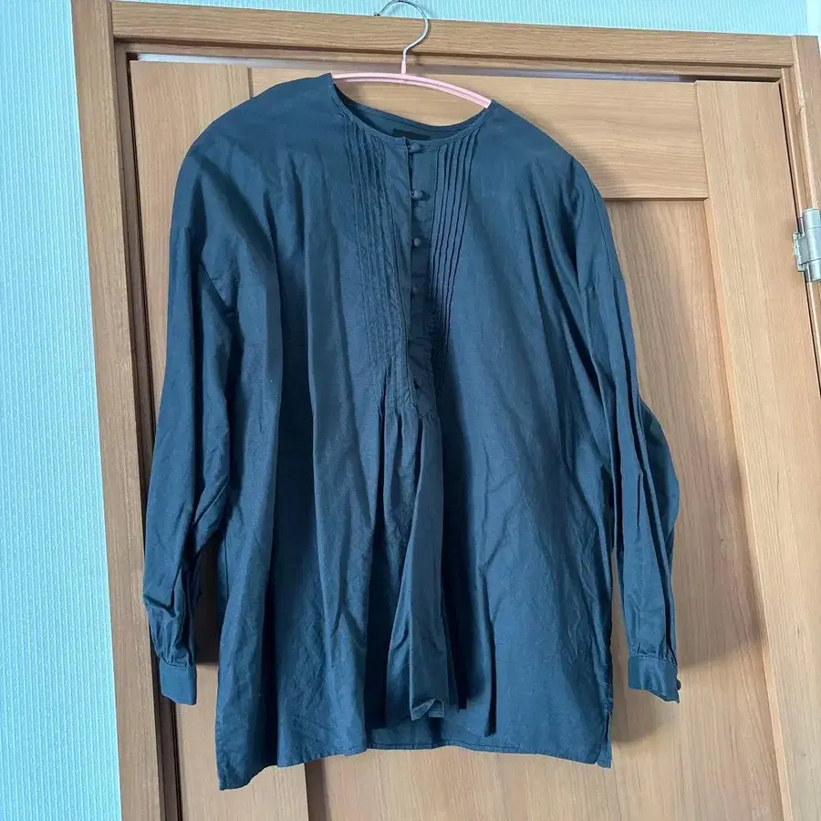다크 그레이 긴팔 셔츠 플리츠 디자인