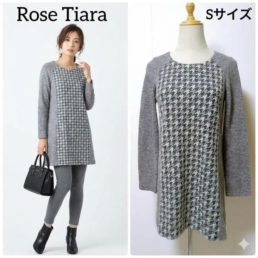 [일본제] 로즈 티아라 절개 니트 튜닉 하운드투스 S 그레이 울 혼방